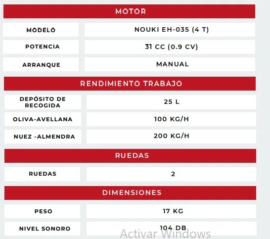 Gran rendimiento de trabajo que va desde los 100-200 Kg de producción dependiendo del fruto a recoger.