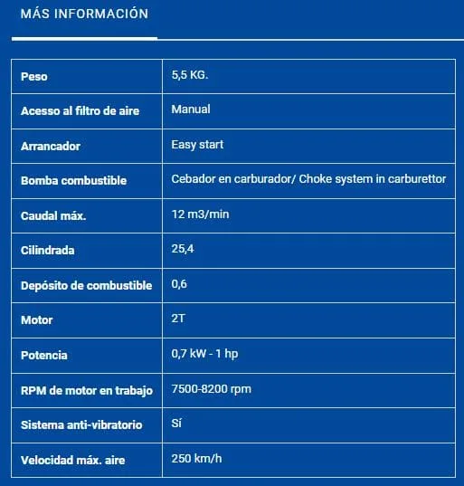 - Soplador de gasolina Goodyear de 26cc, este soplador de mano puede alcanzar una velocidad de aire de 250km/h lo que te permite eliminar las hojas de tu jardín, de pequeñas calles o incluso lugares donde no podrías llegar con un soplador de mayor tamaño. Este soplador es de uso doméstico, muy fácil de usar con sistema antivribación para eliminar las hojas comodamente.